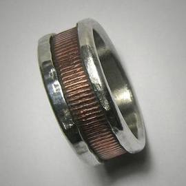 Rustic Men's Women's Wedding band, Unique Textured Mixed Metal Promise Ring